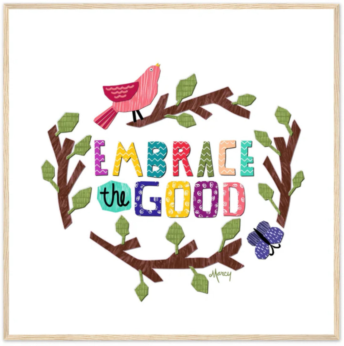 Ready to bring a little more positivity and charm into your home? Our "Embrace the Good" wood-framed print is available now, ready to inspire good vibes and brighten any room.