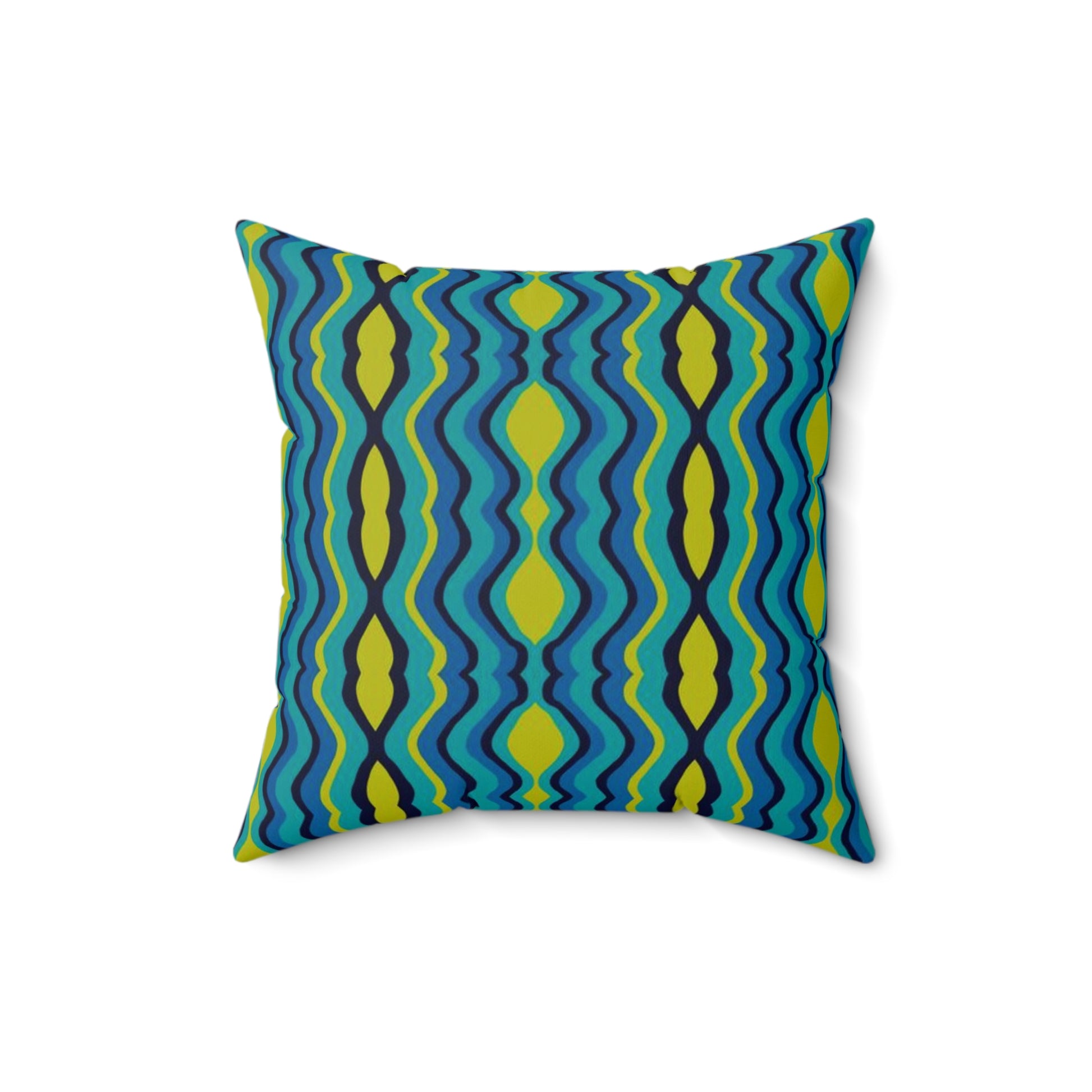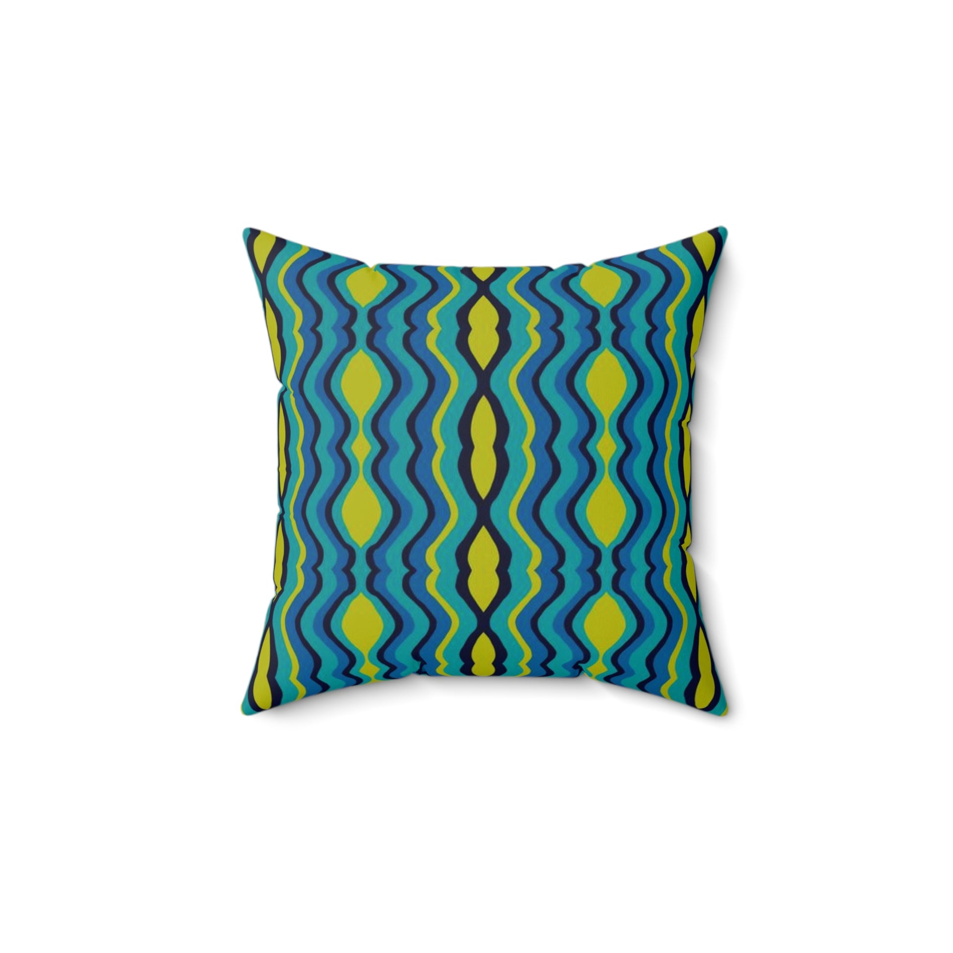 Infuse your space with color, rhythm, and retro charm with my “Boho Psychedelic Wavy Stripes” square spun poly pillow. Featuring flowing stripes in deep, medium, and light blues paired with striking chartreuse, this design captures a groovy yet modern aesthetic. The wavy lines add movement and energy, making this pillow a bold accent for any room.