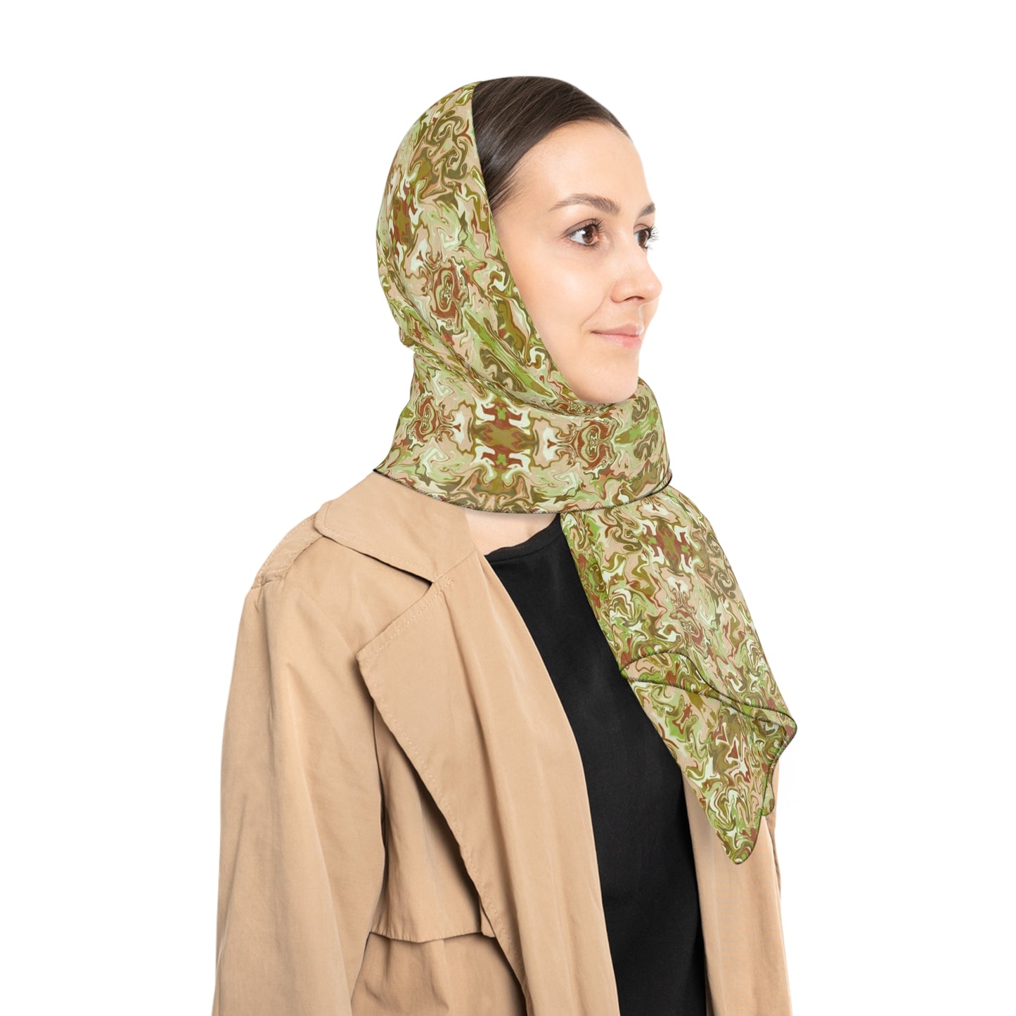 Introducing our Boho Tea Garden square poly scarf, featuring a mesmerizing abstract liquid art design in a symmetrical stripe pattern. With a harmonious blend of green, olive, rust, and tan hues, this scarf exudes natural elegance and bohemian charm. Crafted with soft poly fabric, it offers versatility and comfort, making it perfect for any occasion. Wrap yourself in botanical-inspired beauty with our Boho Tea Garden scarf.