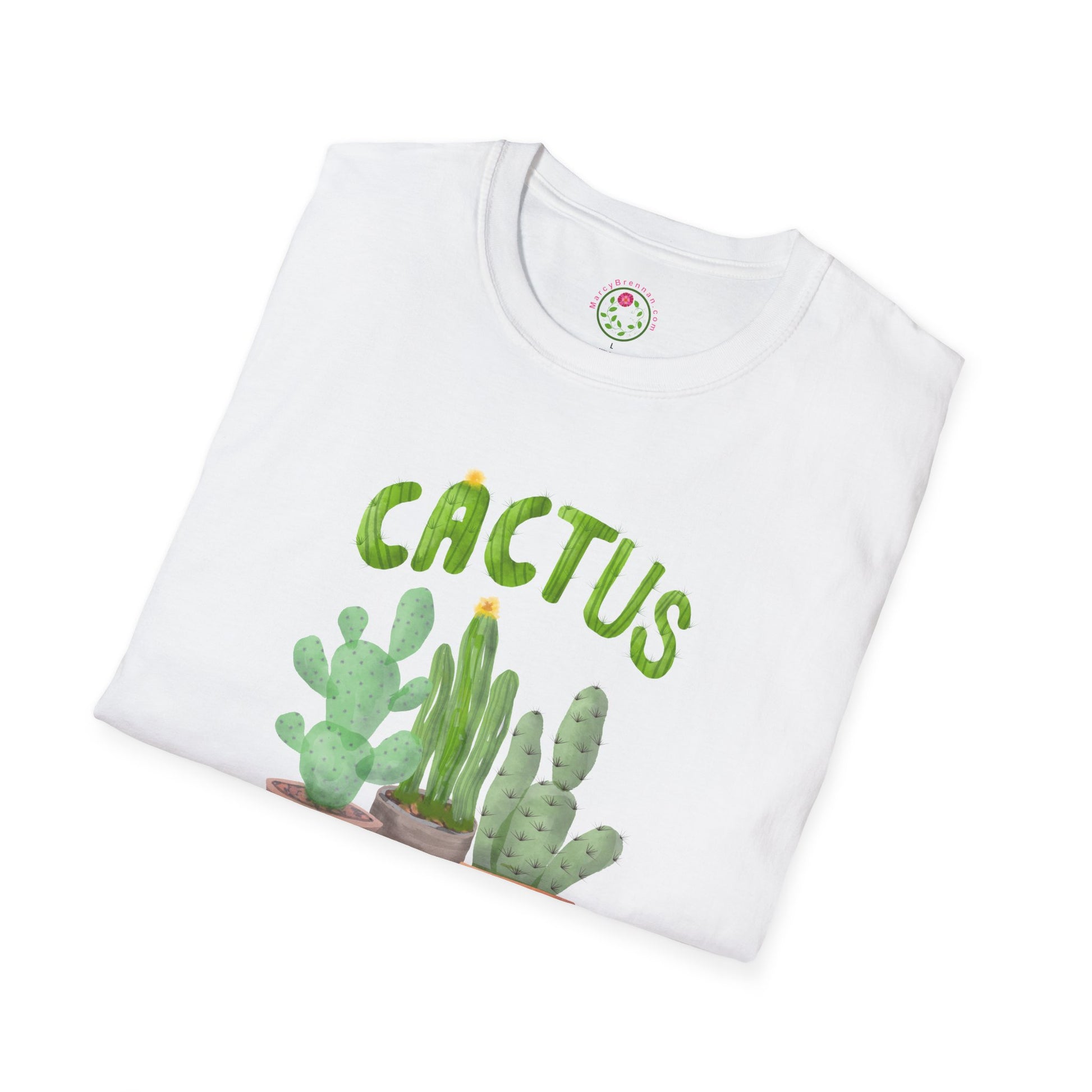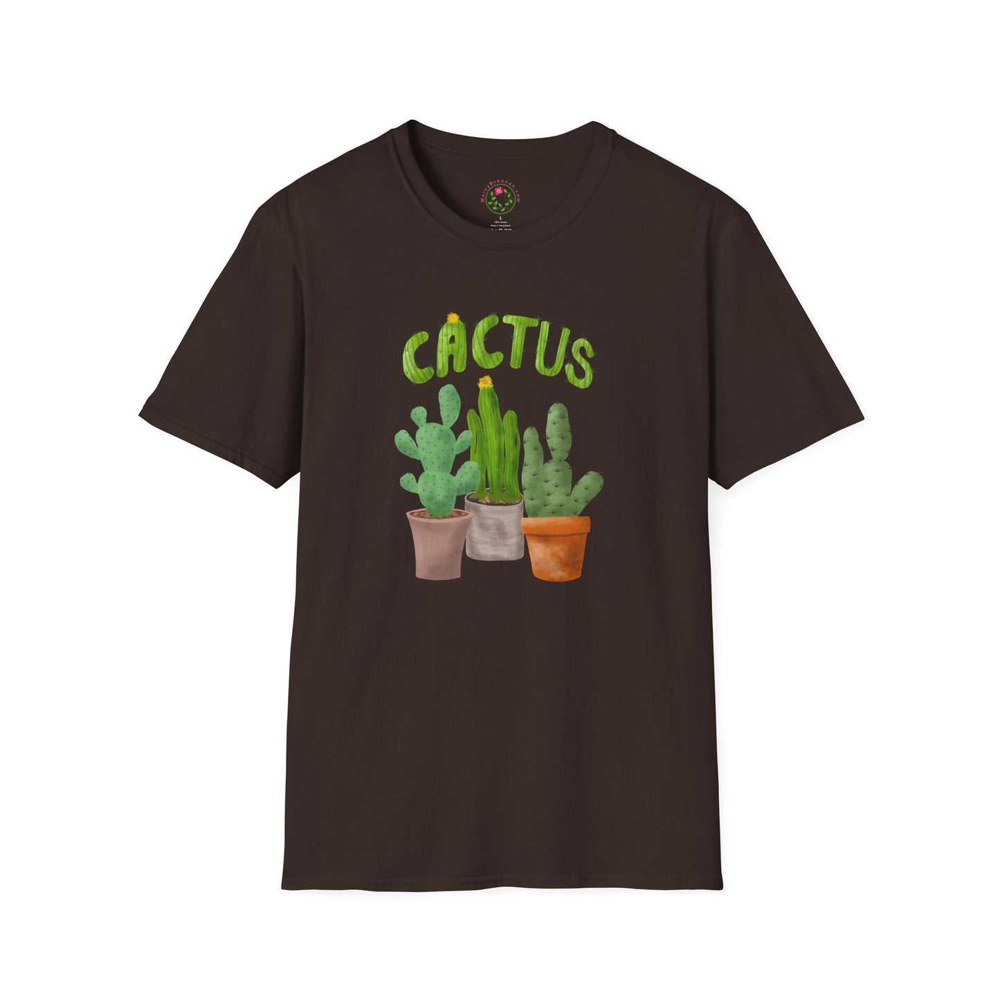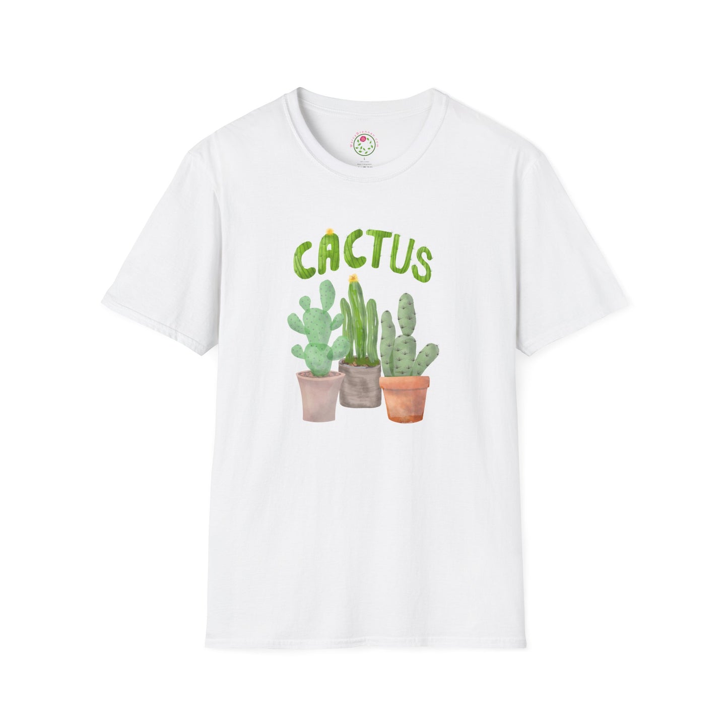 This softstyle t-shirt features a vibrant watercolor illustration of three unique potted cacti, each one bursting with character and charm. The artwork is complemented by hand-lettering of the word "Cactus," designed to mimic the texture and feel of the plants themselves. Made from soft, high-quality fabric, this shirt is comfortable and stylish—perfect for cactus lovers and anyone who enjoys wearing art.