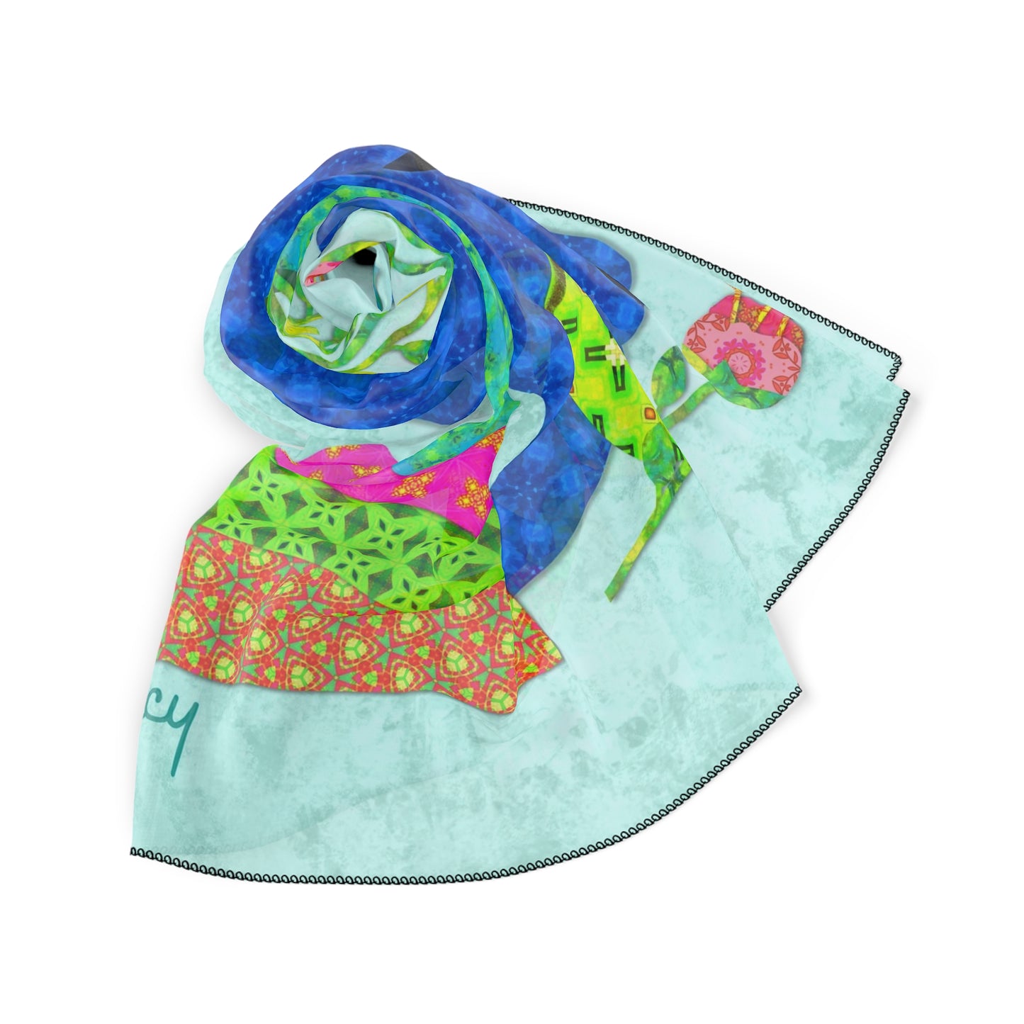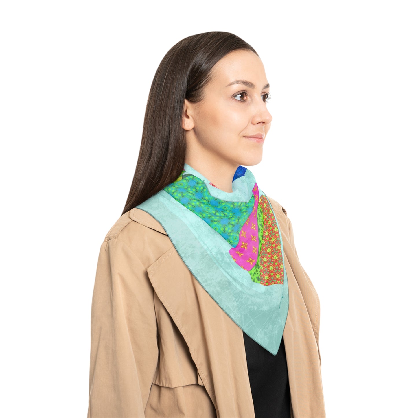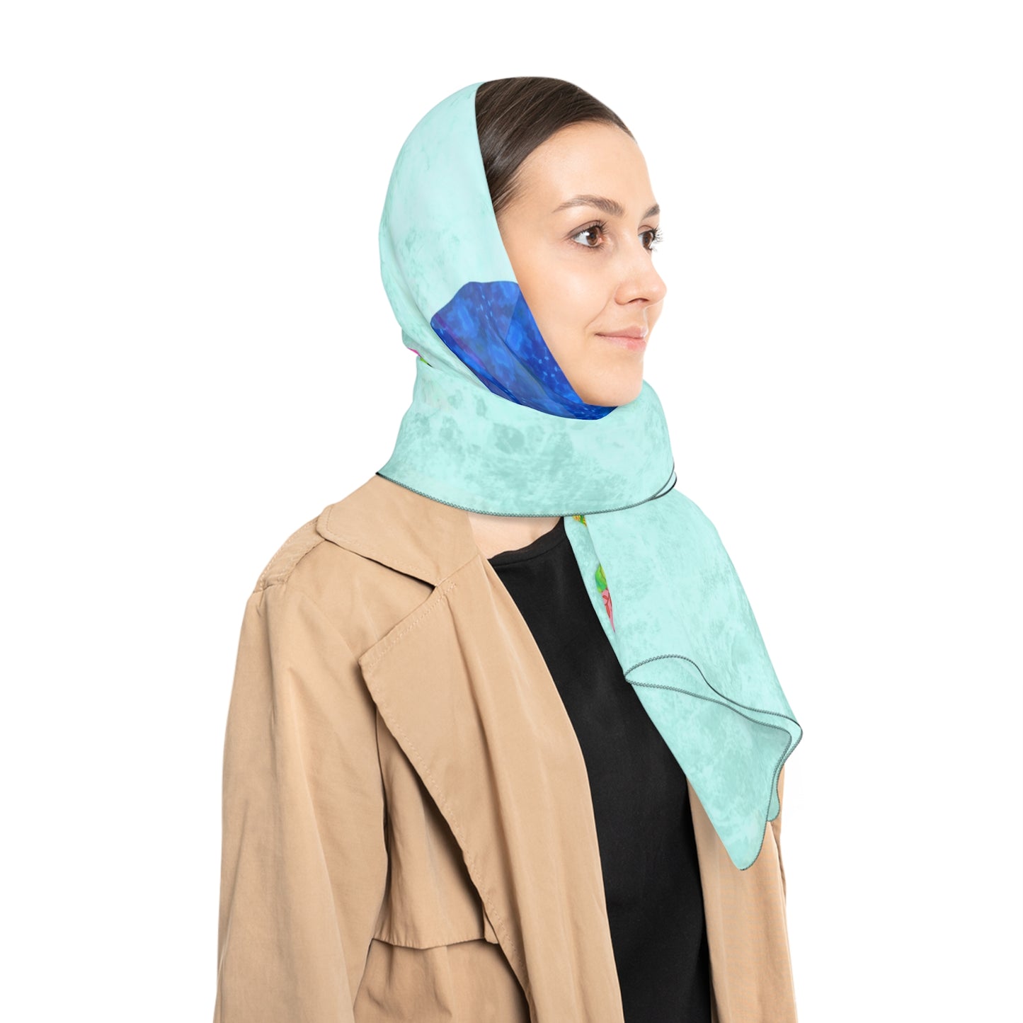 Made with lightweight, flowing poly fabric, this scarf is perfect for adding a pop of personality to any outfit, or even styling as a headscarf, bag accessory, or wall hanging. It's a thoughtful gift for cat lovers, art lovers, and anyone who adores unique and expressive design.