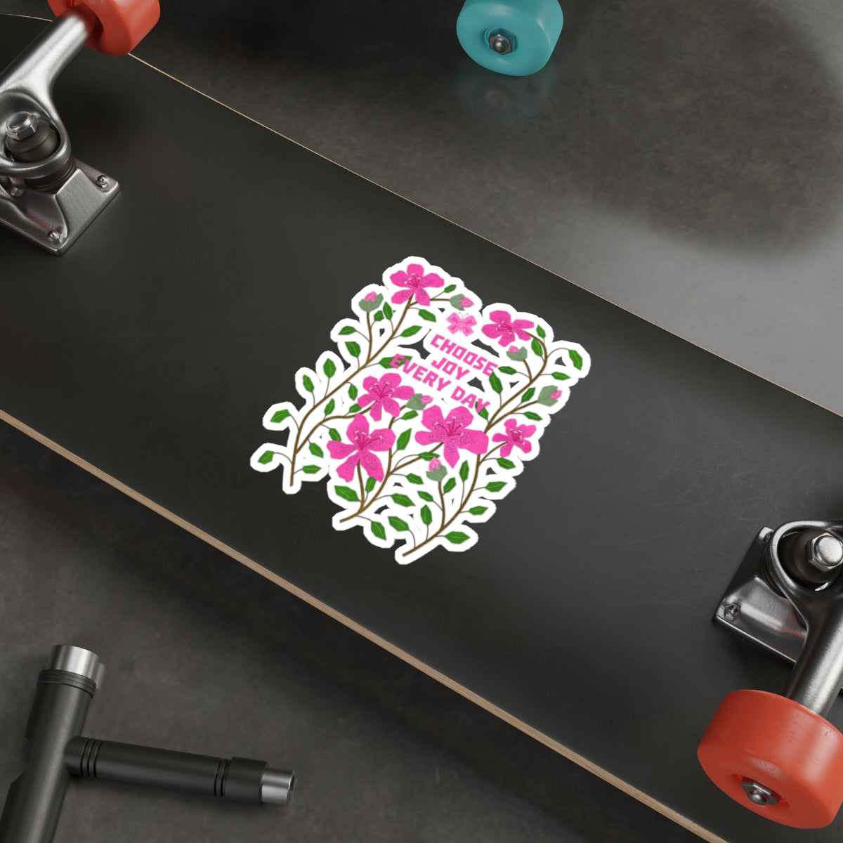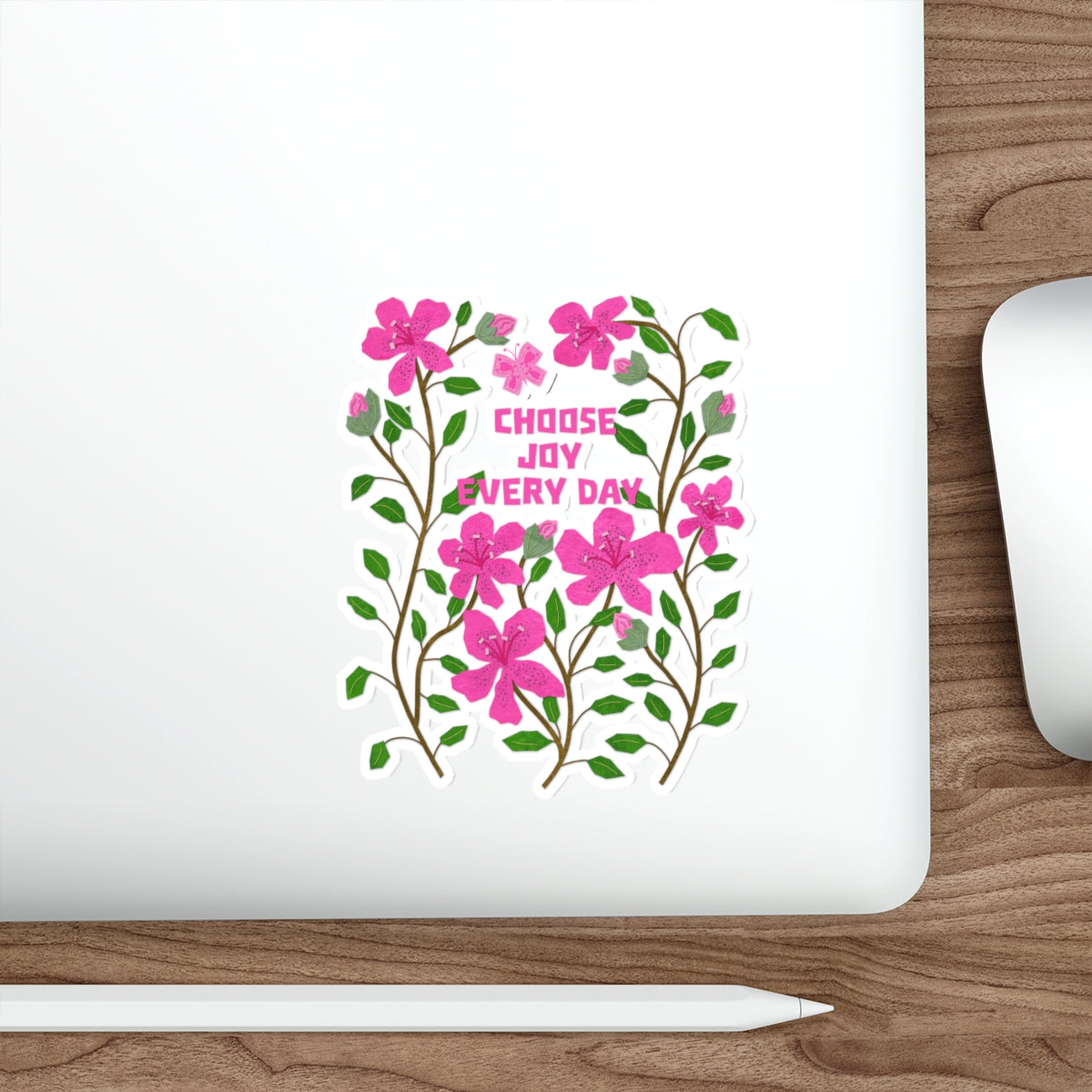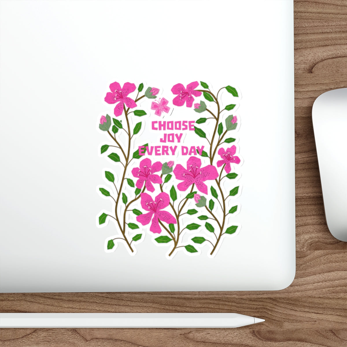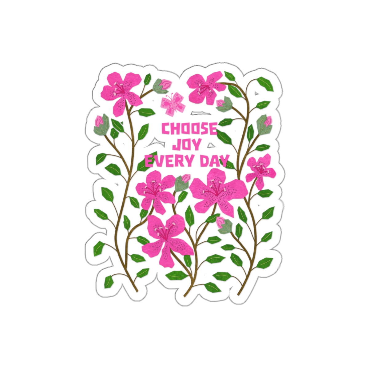 Add a burst of joy to your favorite surfaces with this charming die cut sticker featuring a collage of vibrant pink azaleasand the uplifting hand-lettered quote, “Choose Joy Every Day.” Set against a soft light pink collage paper background, this design combines floral elegance with a message of daily positivity. Perfect for laptops, journals, water bottles, or gifts, this high-quality sticker brings a touch of brightness and inspiration wherever it's placed. Durable, weather-resistant, and cut to highlight the unique shape of the artwork, it’s both a visual treat and a heartfelt reminder to embrace the beauty in everyday moments.