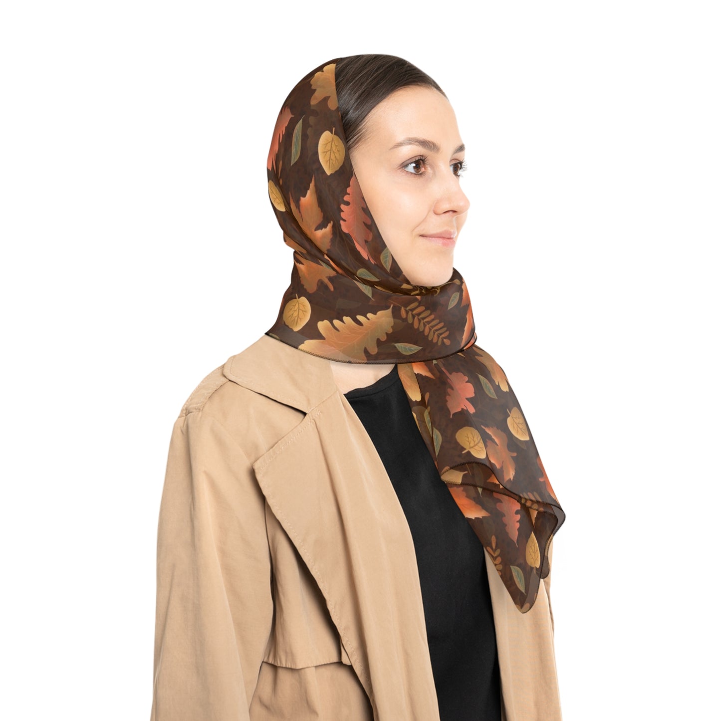 Introducing my beautiful poly voile/chiffon scarf featuring my stunning falling leaves design. Perfect for any occasion, this scarf is available in two sizes: 25”x25” and 50”x50”. The lightweight and airy material makes it perfect for layering and adding a touch of elegance to any outfit. The delicate blend of colors in the design creates a warm and inviting feel that is perfect for the fall season. Whether you wear it as a headscarf, neck scarf or even as a belt, this scarf is sure to make a statement.