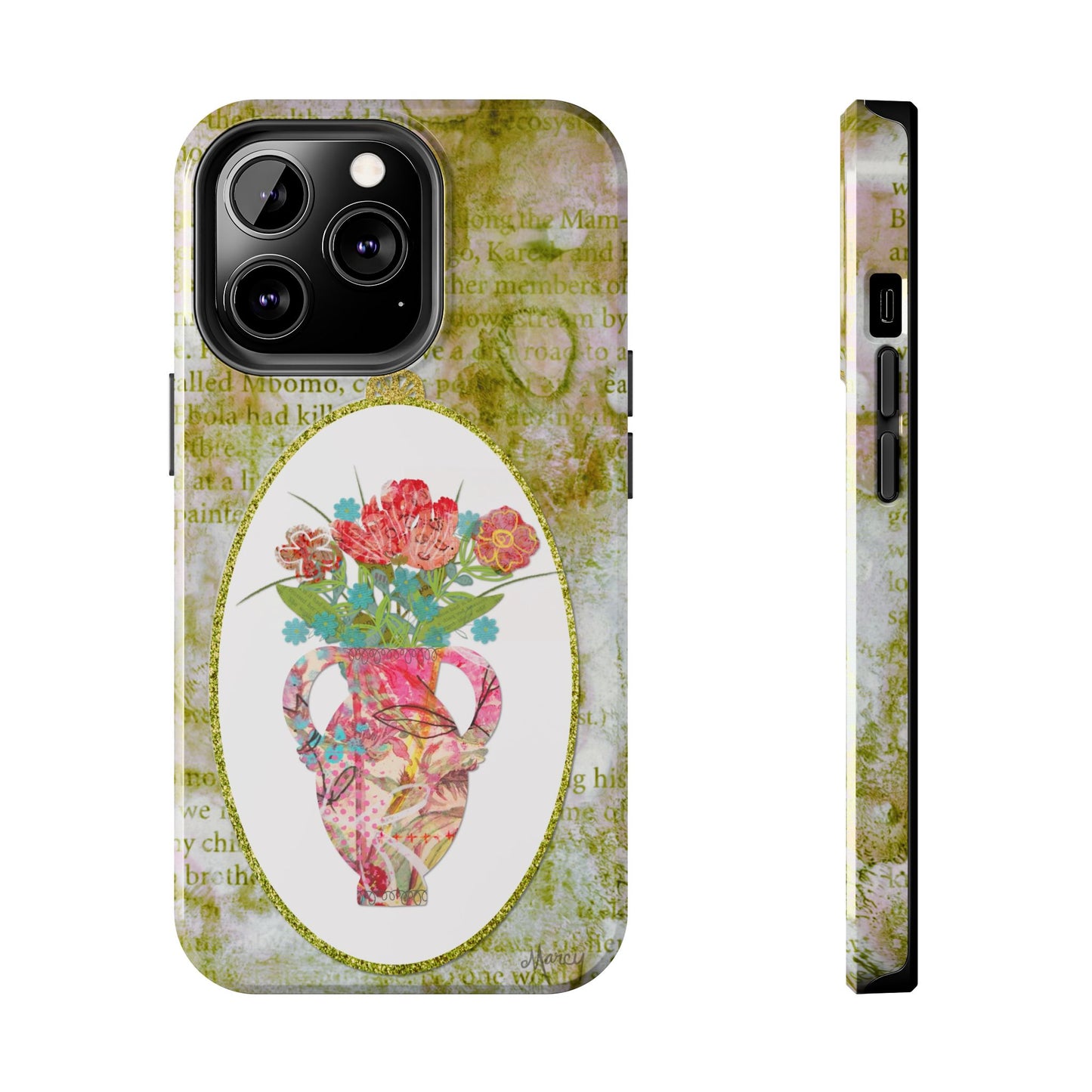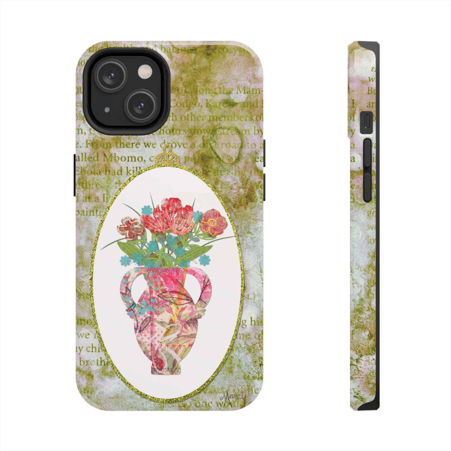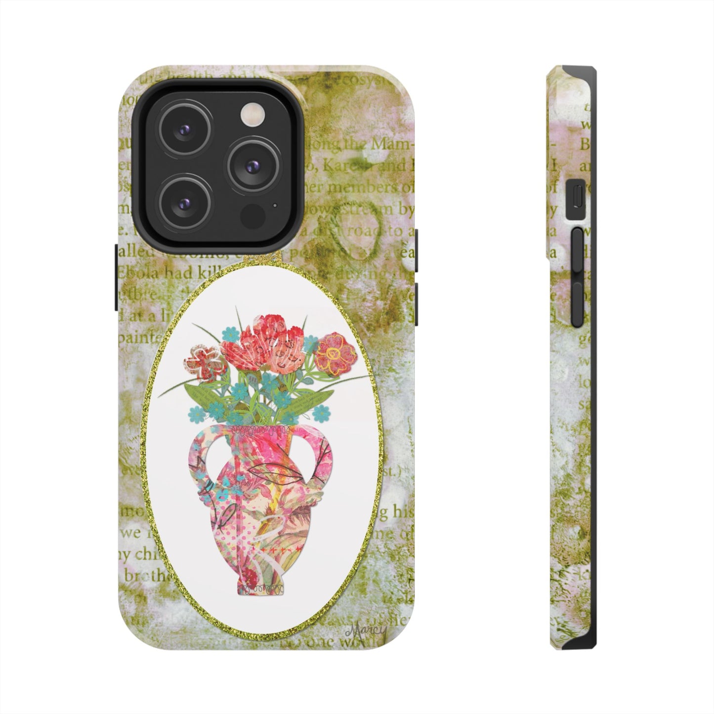 Flowers in Vintage Vase Collage Tough Phone Cases