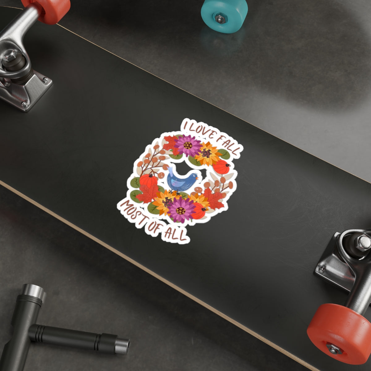 I Love Fall Most of All Autumn Wreath Collage Die Cut Sticker