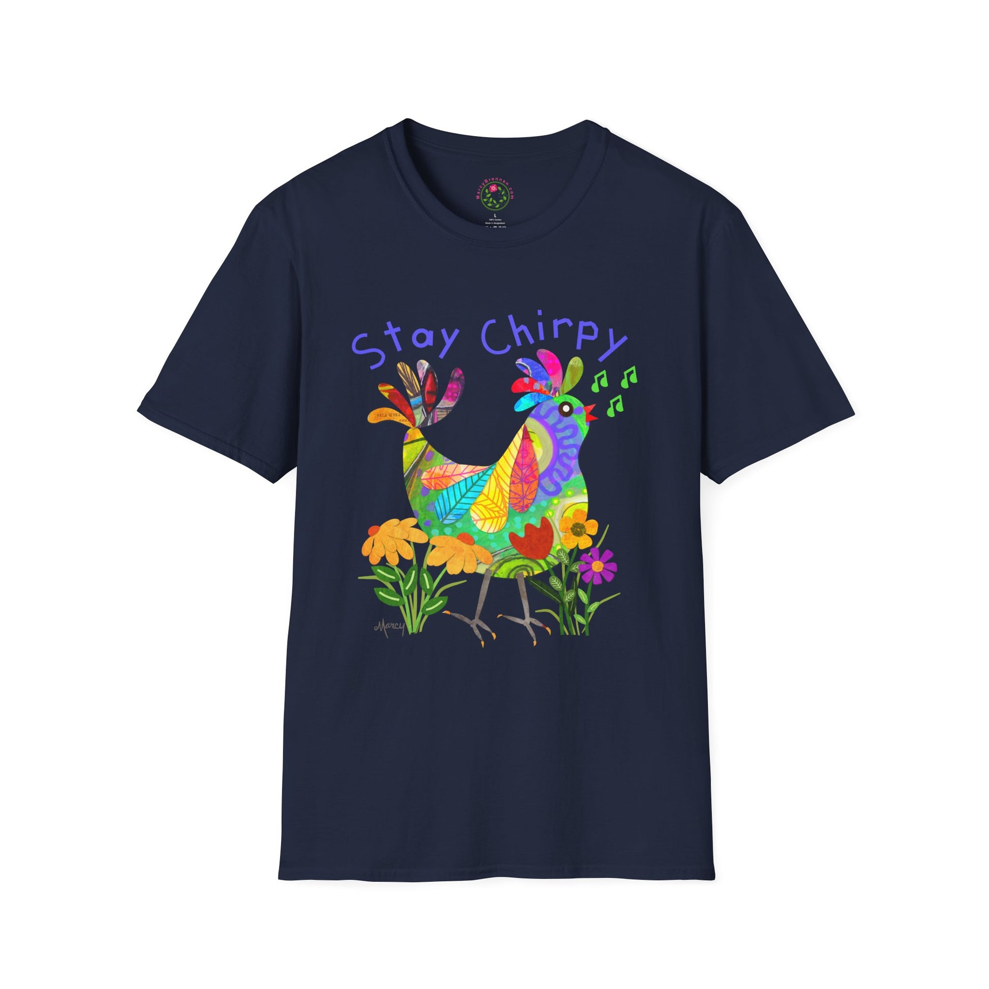 Bring a burst of color and joy to your wardrobe with the Kooky Bird Collage softstyle t-shirt! 🐦💛 This cozy, lightweight tee showcases a plump, colorful bird with vibrant wings, tail, and head feathers, standing among pretty flowers. Above, the hand-lettered “Stay Chirpy” quote and whimsical floating music notes add a fun and uplifting vibe. Perfect for casual days, nature lovers, and anyone who loves to wear their cheerful spirit on their sleeve.
