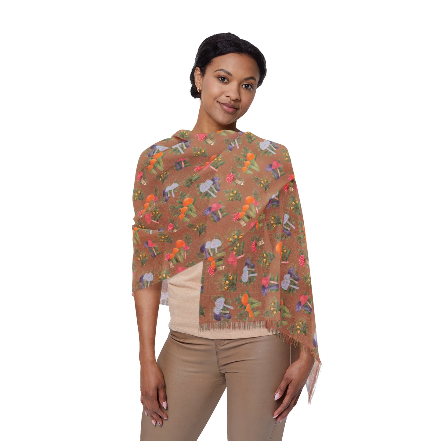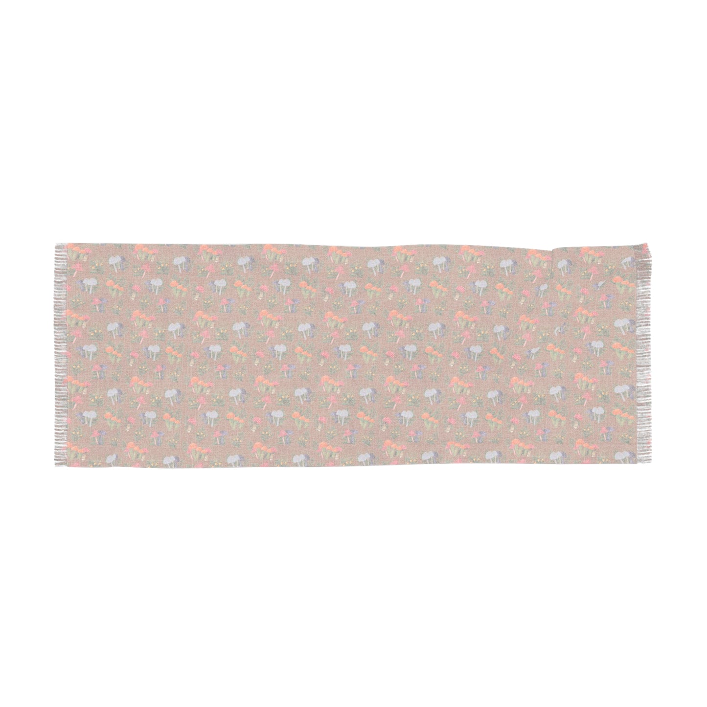Enhance your fall wardrobe with our lightweight rectangular scarf featuring a vibrant Mushrooms design. This eye-catching scarf showcases colorful mushrooms surrounded by rich autumn leaves set against a soft brown background. Perfect for adding a touch of seasonal charm to any outfit, this scarf combines style and comfort, offering a versatile and cozy accessory for cooler days.