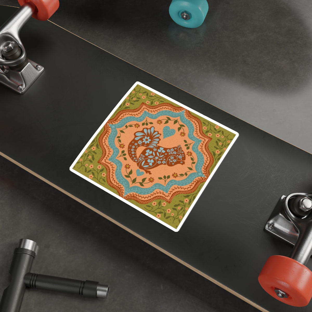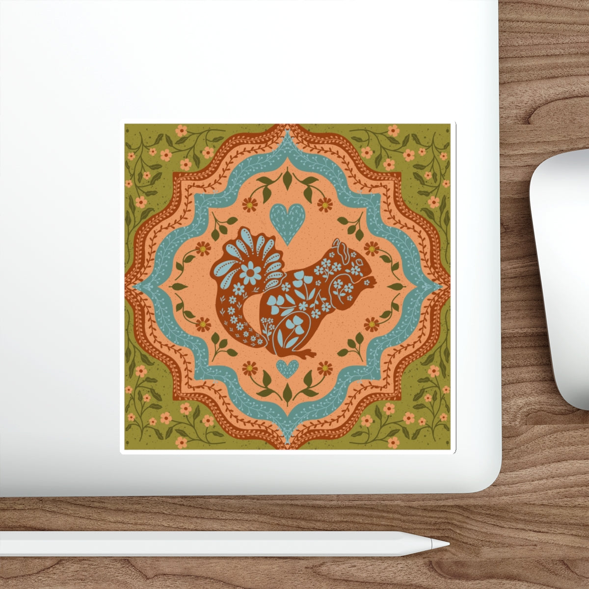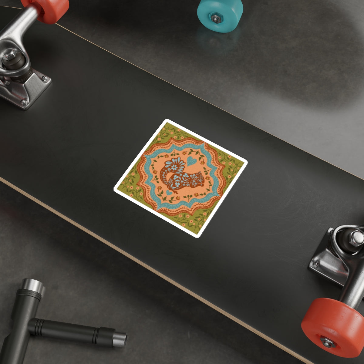 Precision die cut to follow the outer shape of the design, this sticker beautifully highlights the layered frame and folk art details. It’s perfect for decorating laptops, water bottles, journals, planners, art supply cases, or cozy creative spaces.