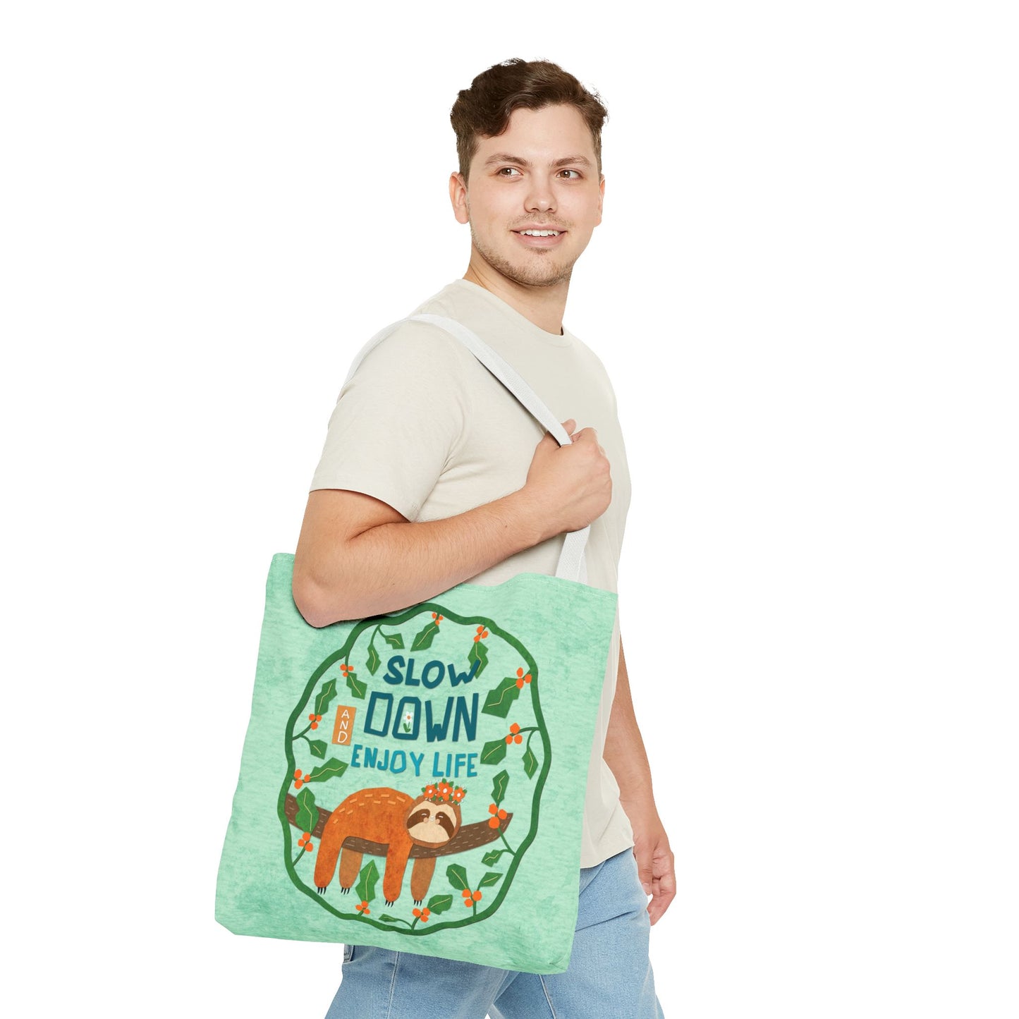Crafted from high-quality materials and printed with vibrant, long-lasting inks, this tote combines function with feel-good vibes—a must-have accessory for sloth lovers, nature enthusiasts, and those who appreciate slow living.