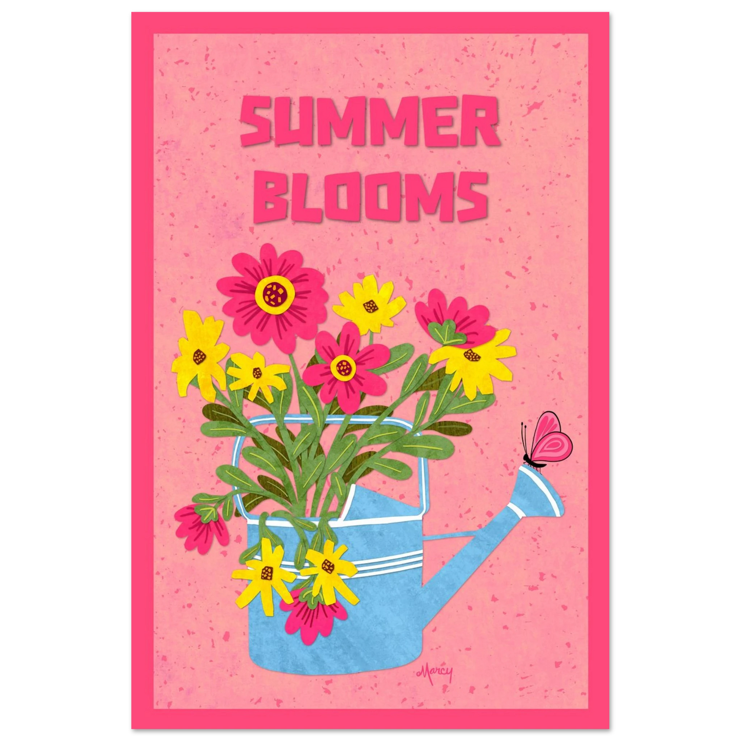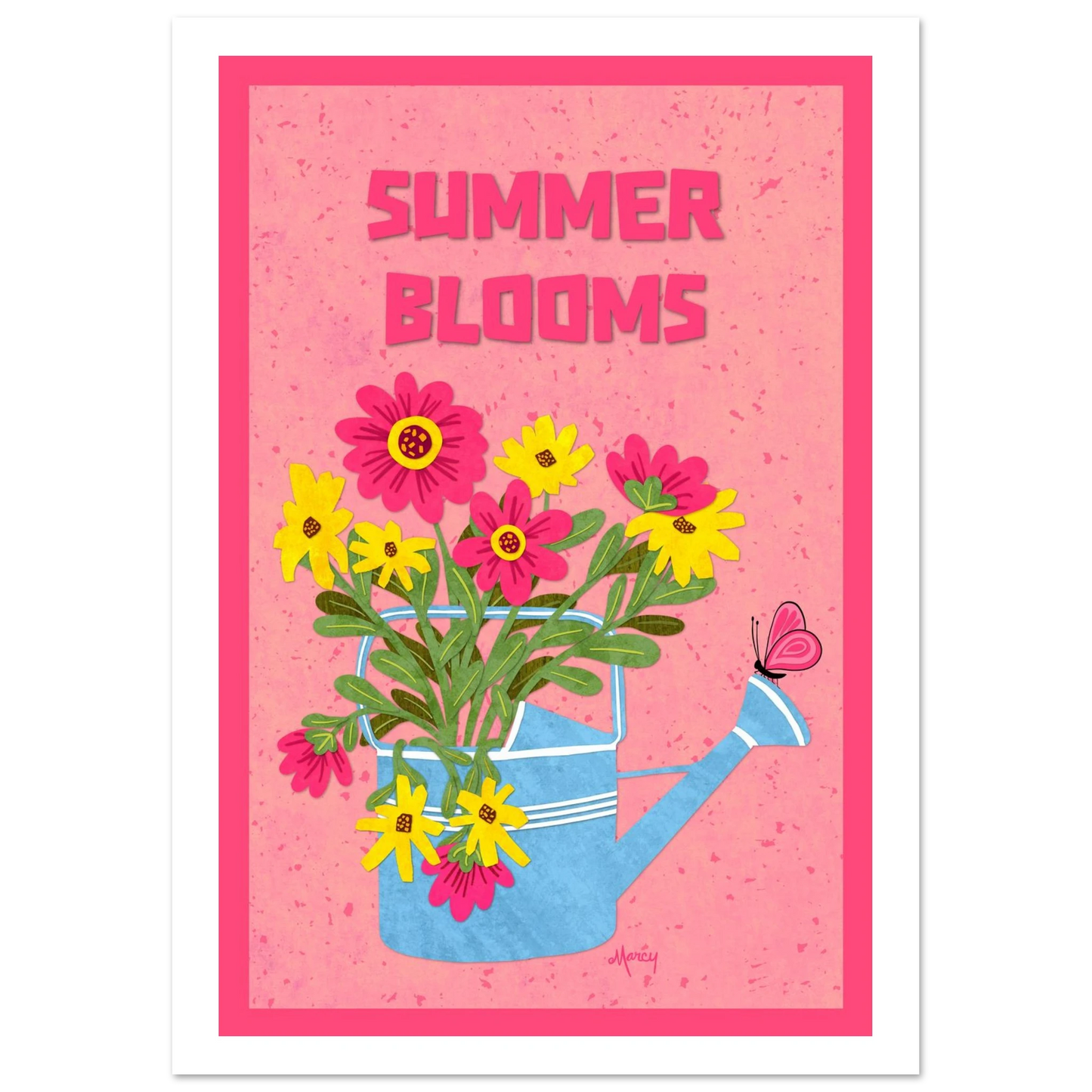 Add a fresh burst of summer charm to your space with this premium matte paper poster featuring my Summer Blooms Collage design. Showcasing a whimsical blue watering can overflowing with pink and yellow summer flowers, this artwork is crafted in a playful digital cut paper style. The phrase “Summer Blooms” is beautifully hand-lettered in soft pink cut paper lettering, perfectly complementing the vibrant floral bouquet. Printed on high-quality matte paper and framed in a natural wood frame, this piece brings warmth, texture, and seasonal joy to any room—ideal for brightening up living rooms, bedrooms, offices, or garden spaces.