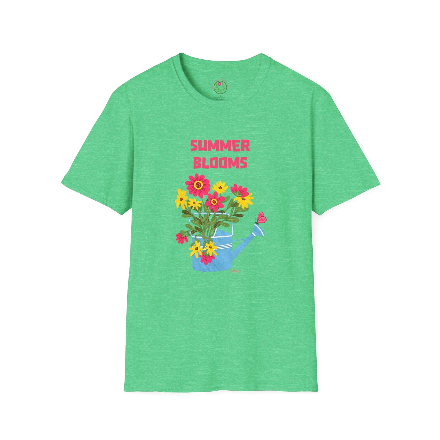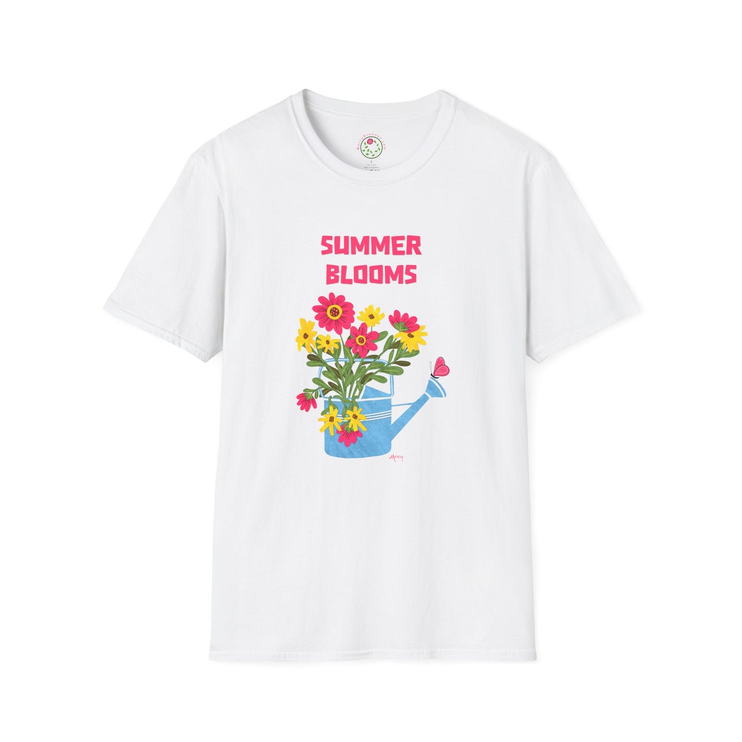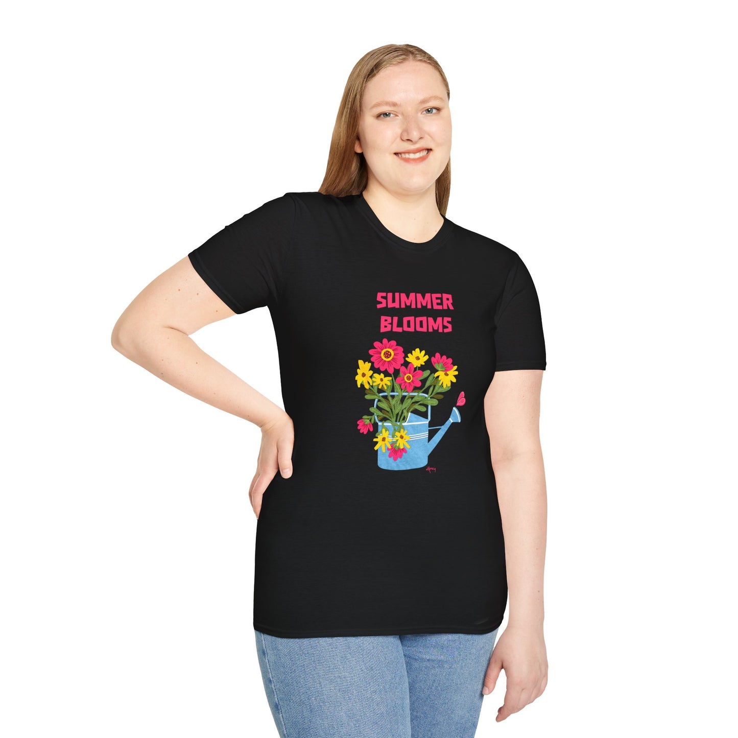 Wear the joy of the season with this ultra-soft t-shirt featuring my Summer Blooms Collage design! This cheerful artwork showcases a blue watering can bursting with vibrant pink and yellow summer flowers, all styled in a playful digital cut paper look. The phrase “Summer Blooms” is written in charming pink cut paper lettering, giving the design a fresh, handmade feel. Printed on a breathable, softstyle cotton tee, this shirt is perfect for gardeners, flower lovers, and anyone who wants to carry a little sunshine with them all day long. Whether you're headed to the farmer’s market, a garden stroll, or just soaking up summer vibes, this tee is a wearable bouquet of happiness.