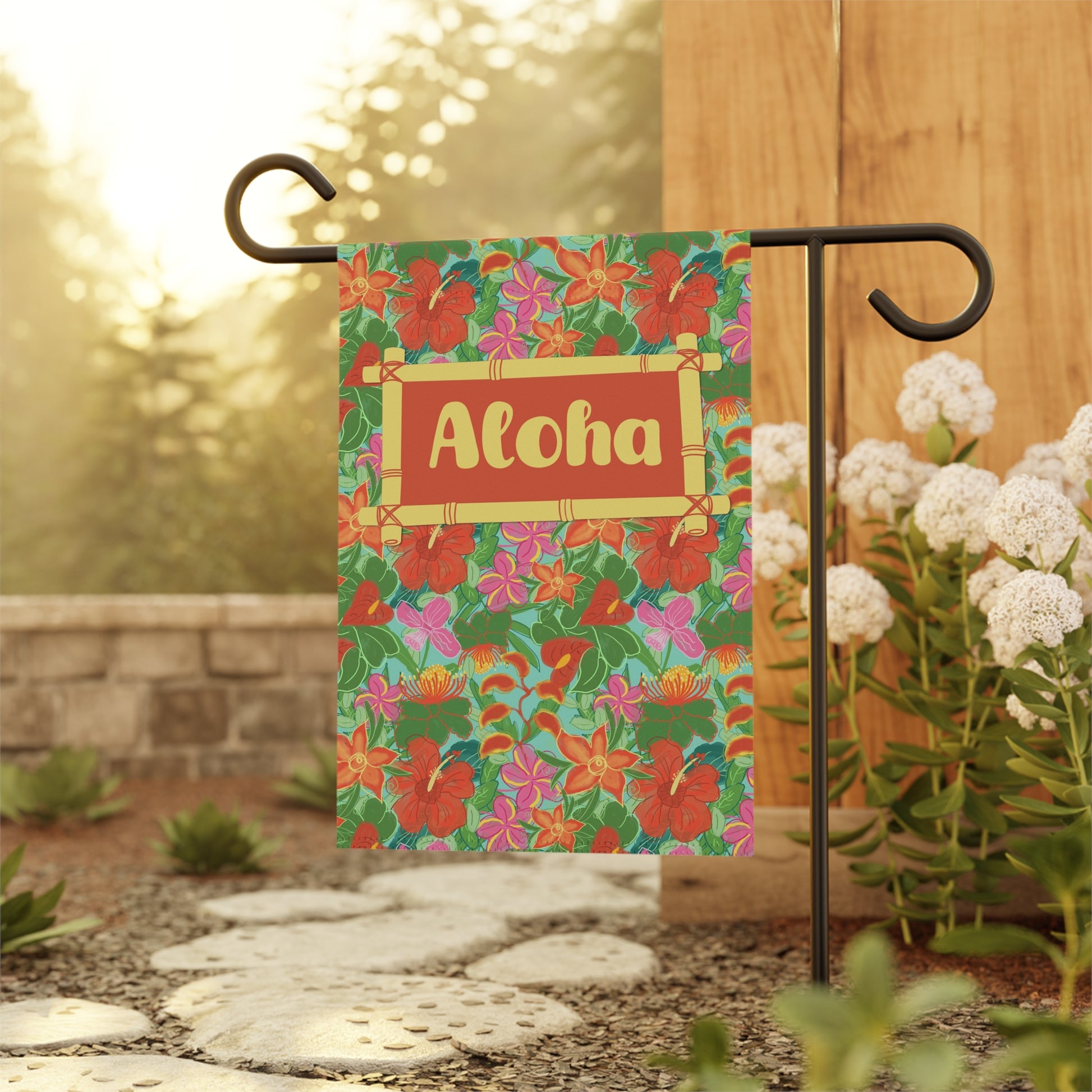 Say hello with the spirit of the islands! đșđ Our âTropical Flowersâ garden banner brings tropical warmth right to your doorstep with the cheerful greeting âAlohaâ in bright yellow, set inside a bold tomato-red inset.