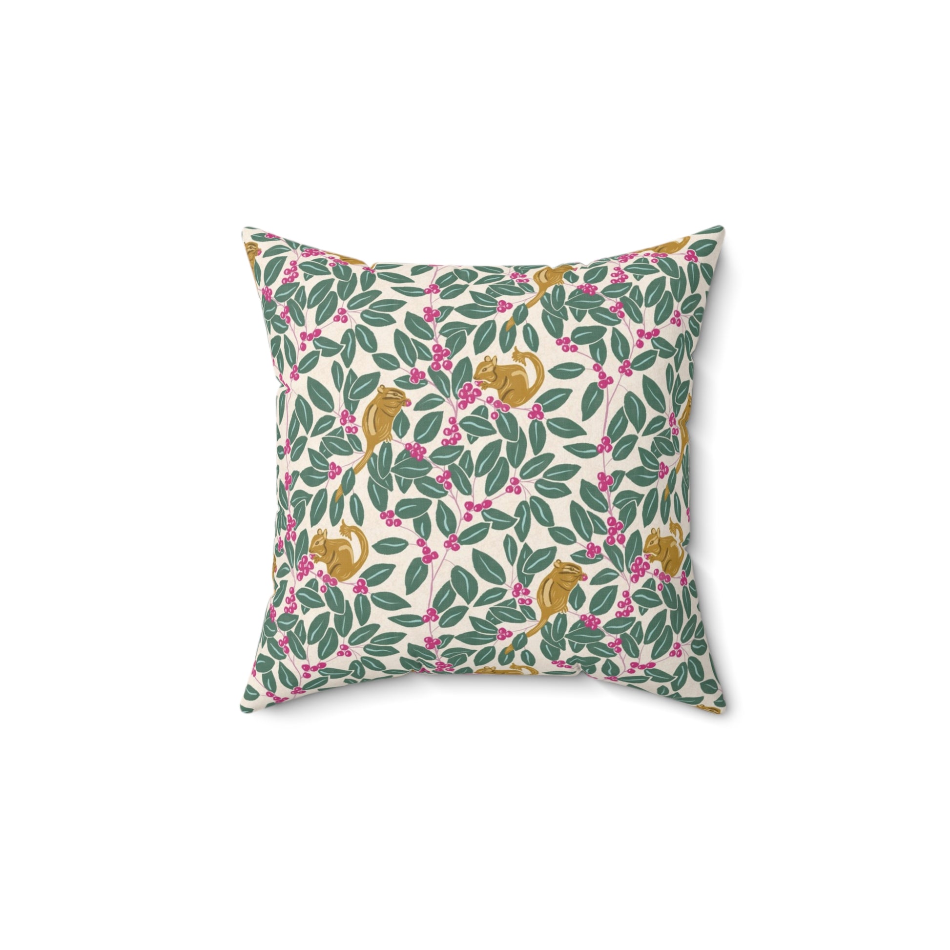 Wintergreen and Chipmunks Spun Polyester Square Pillow