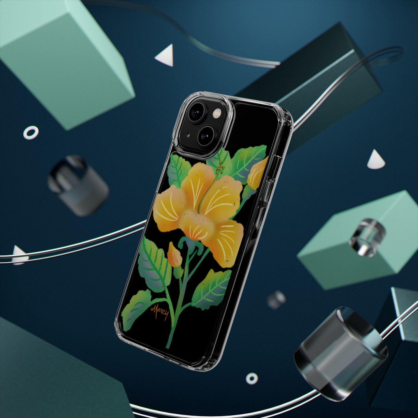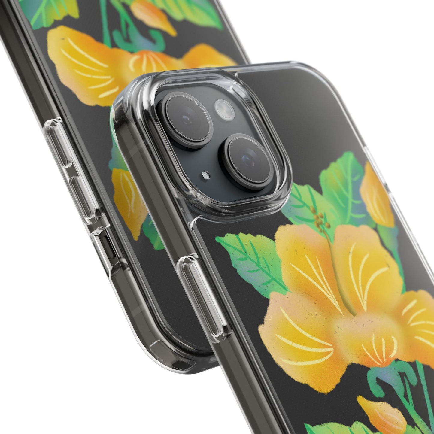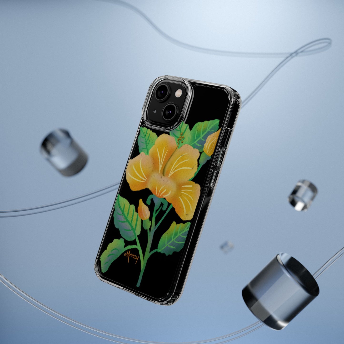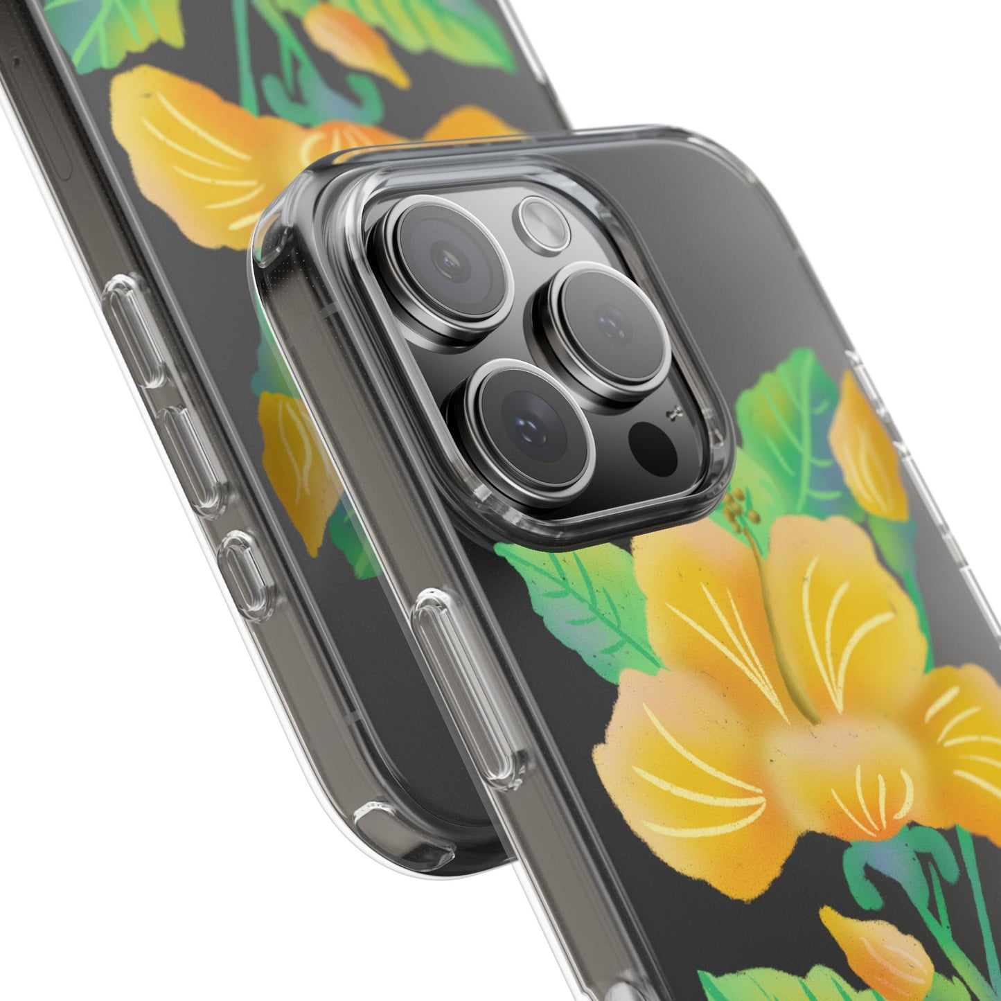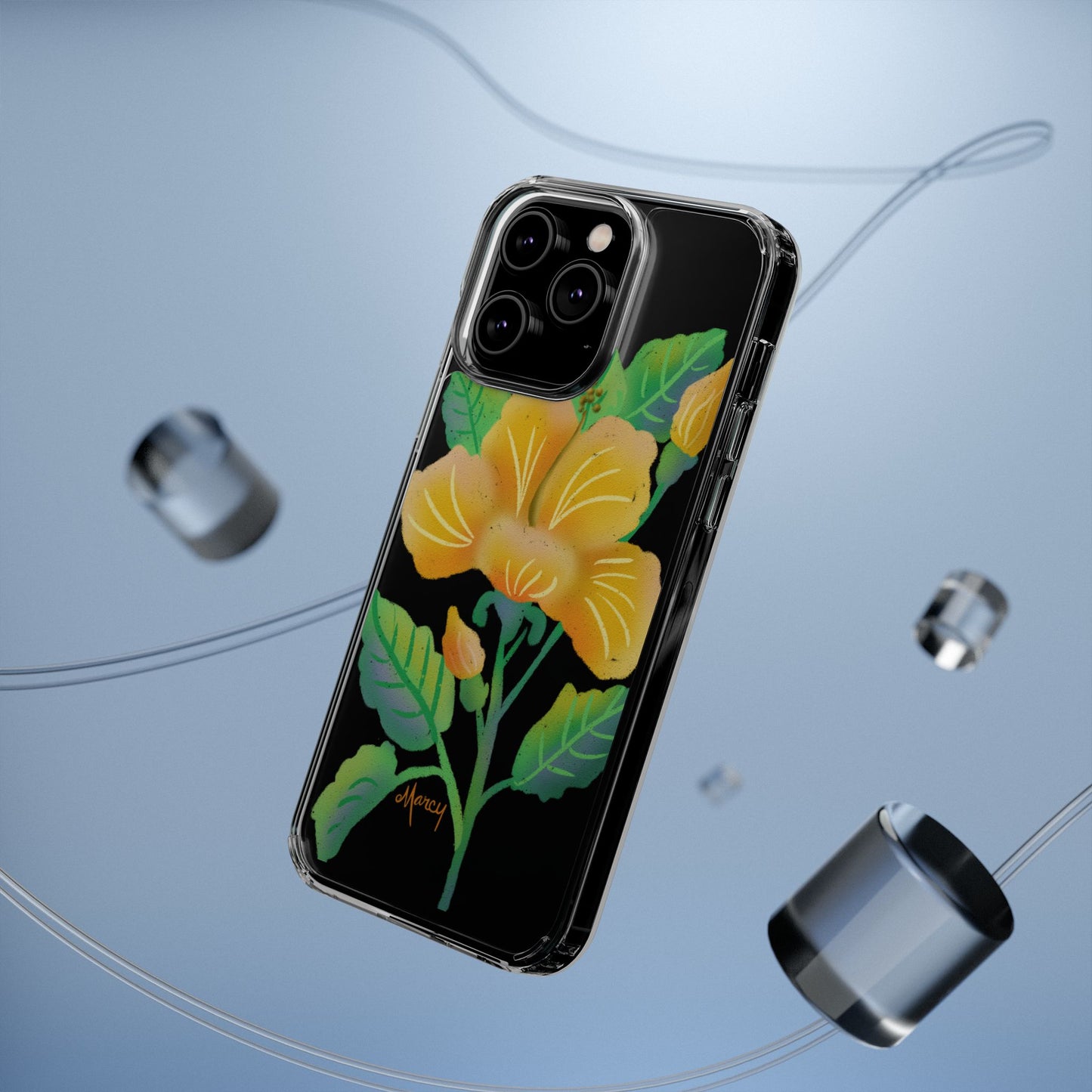 Bring the tropics to your everyday with this pretty yellow hibiscus blossom. This clear phone case comes to protect both your phone's surface and its aesthetics. The crystal clear polycarbonate case is flexible, crack and chip-resistant, as well as co-molded with TPU cushioned edges on the side. This gives protection against scratches and minor bumps while still keeping your phone's slim profile intact. Each case features open ports for hassle-free connectivity.